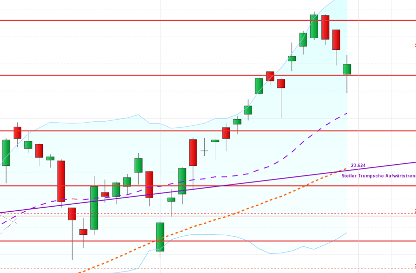 . Dax notiert bereits vorbörslich über 23.800 Punkten. Zu Kassabeginn könnte er das frühmorgendliche Gap an der Barriere 23.791 knapp schließen. …. dann ist Platz bis zur Barriere 23.927. Wir betrachten die Sache am Abend neu. . Aufmerksamkeitslinie: Dax schloss den späten Handel am Freitagabend um 22.00 Uhr mit 23.756 Punkten im Aufwärtsmodus. Meine Aufmerksamkeitslinie […]