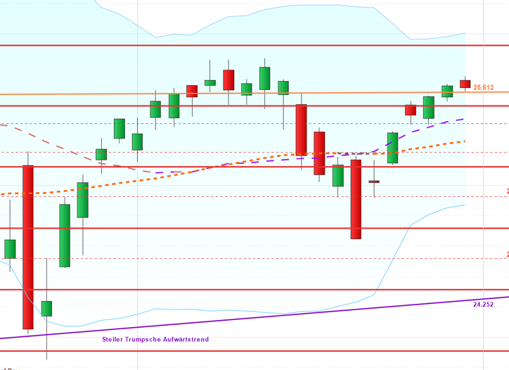 . Aufwärts immer, rückwärts nimmer? Dax eroberte gestern per Kassaschlusskurs seine 20-Tagelinie zurück. Im späten Handel stiegen die Kurse weiter, so dass wir auch heute morgen Dax oberhalb der Barriere 24.169 zu Handelsbeginn vorfinden werden. Die asiatischen Börsen handelten in der Nacht verhalten, Nikkei gewinnt zur Stunde 0,2 Prozent hinzu, Hang Seng 0,5 Prozent. Für […]