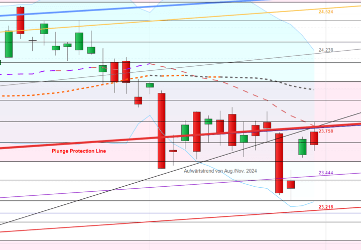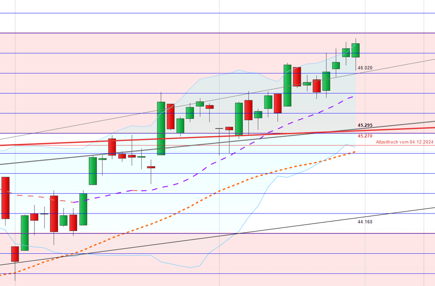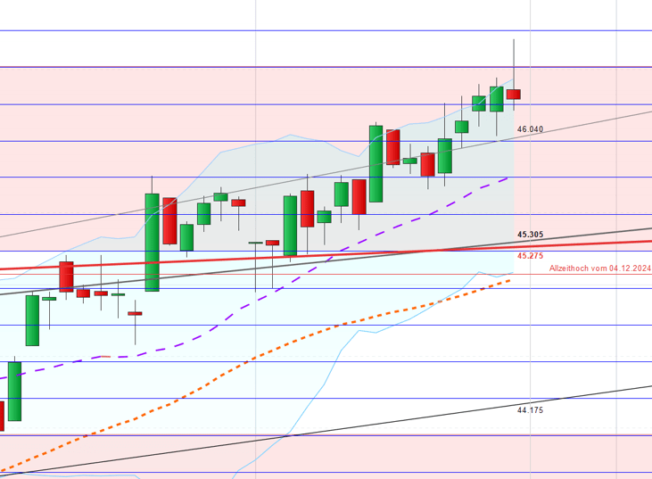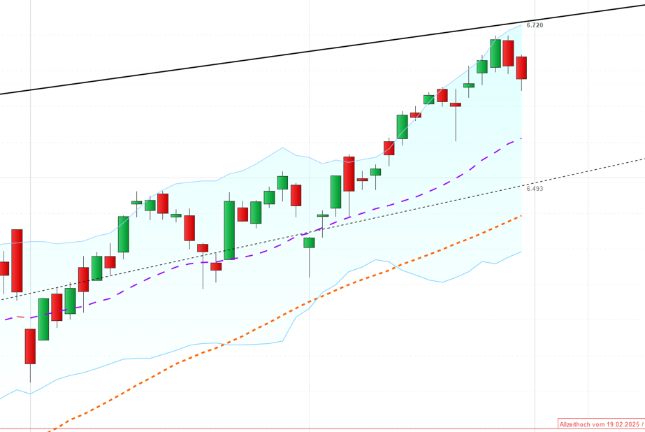 . Es ist das dritte große Gap seit April mit dem Dax gestern Furore machte. Kein Frage, er will ein neues Allzeithoch, auch wenn er heute Morgen zur Handelseröffnung weit über dem Bollinger Band handelt. In Berührung käme er mit dem oberen Bollinger Band erst, wenn er die letzte Abwärtstrendlinie bei 24.382 Punkten in Frage [...]