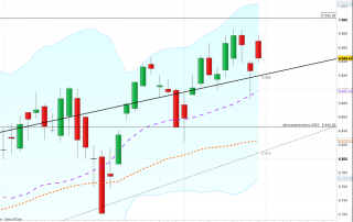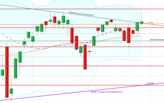. Jetzt handelt Dax wieder innerhalb des Bollinger Bandes. Gestern konnte er noch 25.508 Punkte erreichen, endete mit Kassaschluss dann aber unentschieden und nur knapp oberhalb der blauen Trendlinie, die er bis 22.00 Uhr nicht [...]